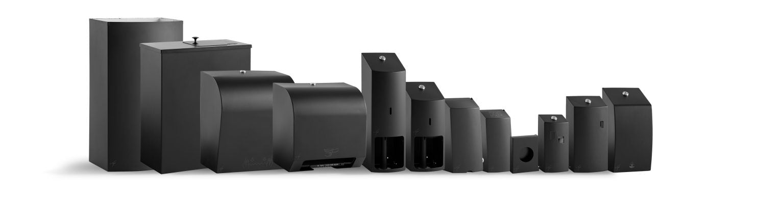Bold and stylish hygiene solutions with a matte black finish, ideal for contemporary and high-end settings.