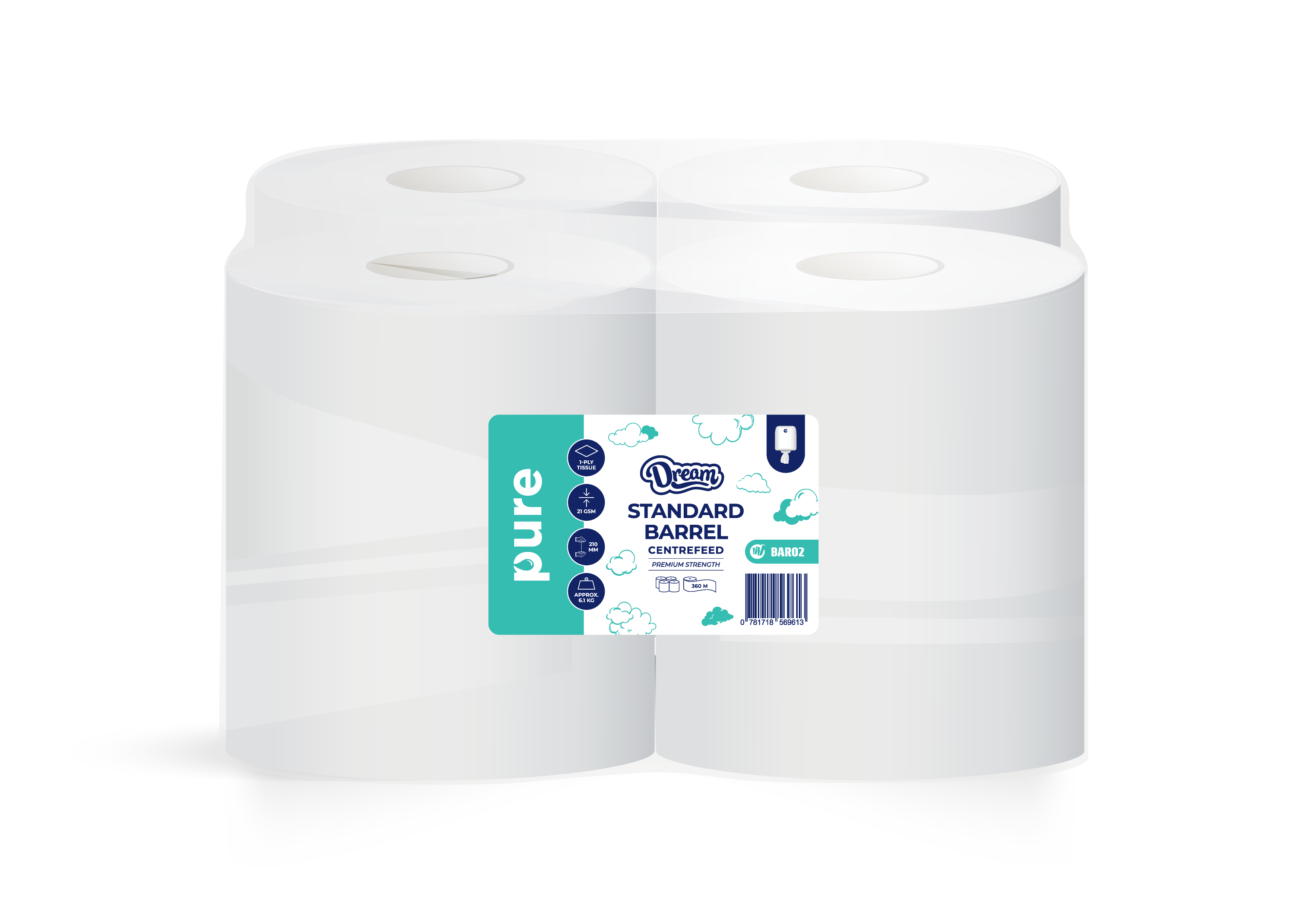 Pure Centerfeed Range offers a variety of size and texture options, all with excellent wet strength benefits.Our continuous, smooth texture rolls provide superior quality, while our embossed and perforated option is extra luxurious and offers controlled dispensing.