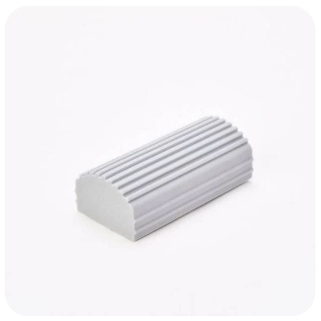 The Damp Duster collects and traps dust in one quick wipe! Under running water it rinses clean so you can use it time and time again. Perfect for blinds, vents, baseboard, railings, mirrors and more! Product arrives pre-moistened in packaging. Dampen with water before each use to soften foam.